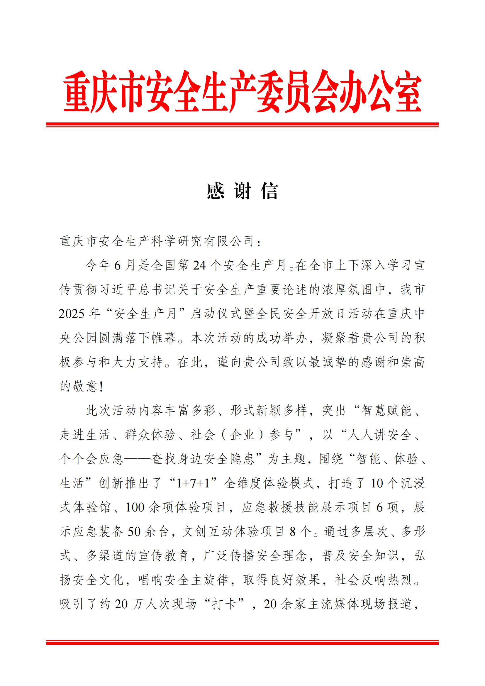 重慶市應急管理局就國債項目技術支撐服務工作向公司致